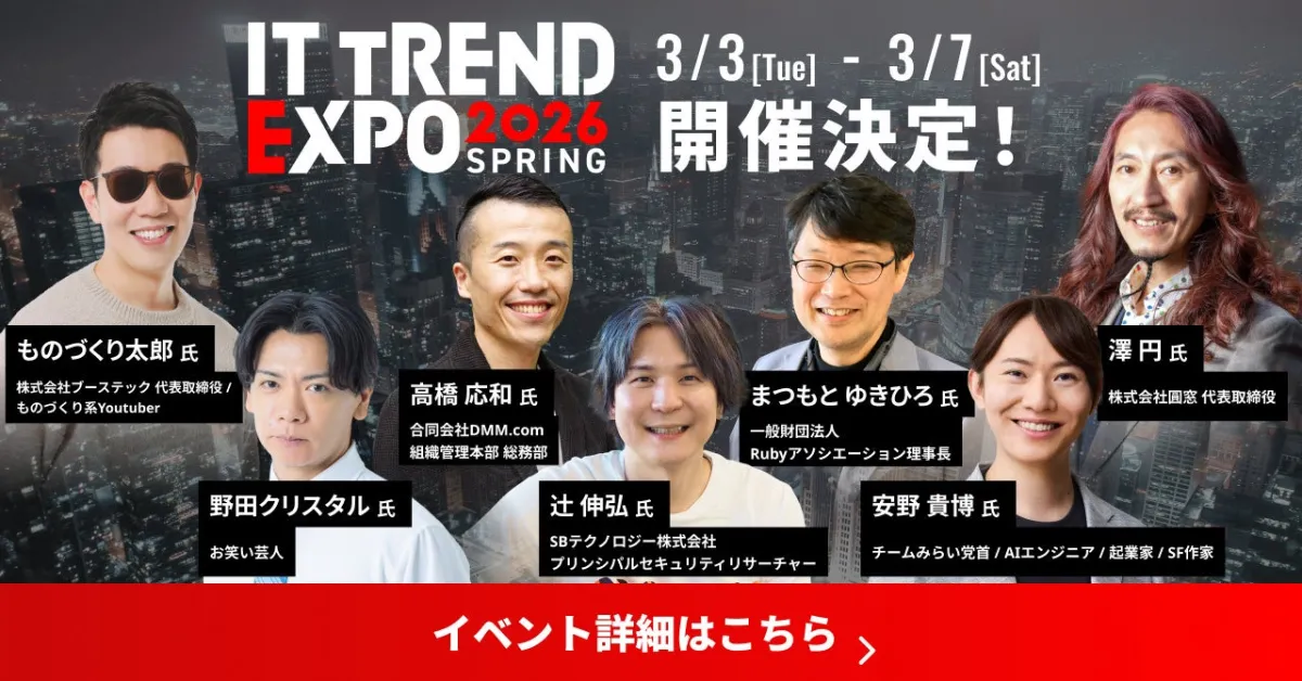 株式会社イノベーションのグループ企業である株式会社Innovation & Co.が主催する『ITトレンドEXPO2026 Spring』が、2026年3月3日から3月7日までの5日間にわたり、オンライン上で開催されます。このイベントは、業界の最新トレンドや技術を学び、ビジネスへ活かすための貴重な機会となっています。
