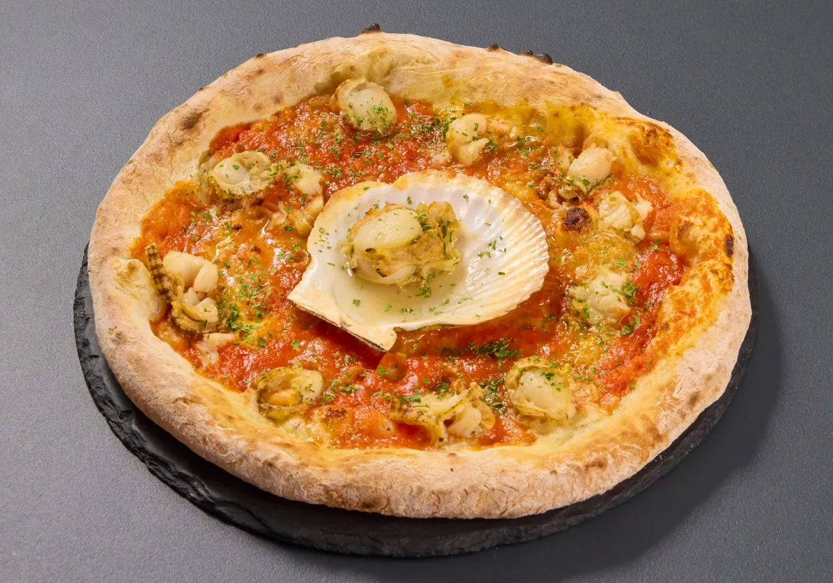 まずは、冬のピザとして登場した「北海道産ホタテのピザ」。このピザは、厚木タップルームのこだわりが詰まった逸品で、約1,420円(税込み1,562円)で提供されています。北海道産の新鮮なホタテを殻ごと乗せて、石窯でじっくり焼き上げられたこのピザは、特製のトマトと生クリームに隠し味として味噌を使っています。