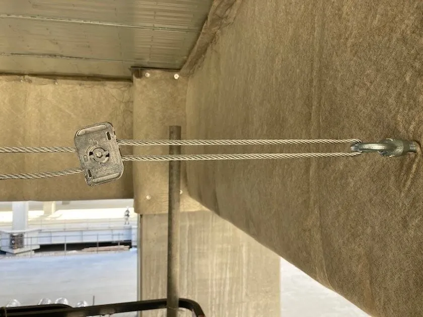 このメッセンジャーワイヤ工法は、特に物流倉庫、工場、駐車場といった様々な現場での実績があります。施工時には、グリップルジャパンが提供する計算書(径間、弛度、重量)を基に最適な張力をかけることで、迅速かつ効率的に施工が可能です。その結果、少人数でも高い評価を受けています。