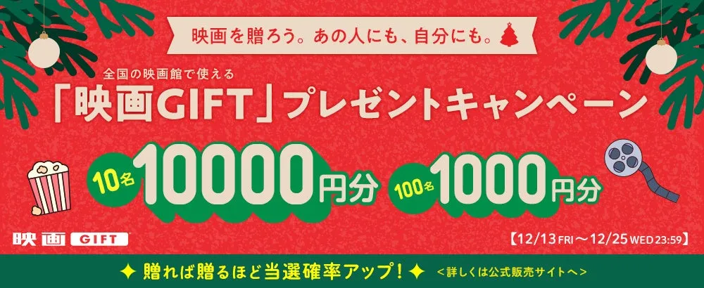 株式会社ムービーウォーカーが手掛ける映画鑑賞デジタルギフト「映画GIFT」が、2024年クリスマスに向けて特別なキャンペーンを実施します。このキャンペーンは、全国の映画館で利用できるデジタルギフトを購入した方を対象に、抽選で豪華な映画のプレゼントが当たるというもの。