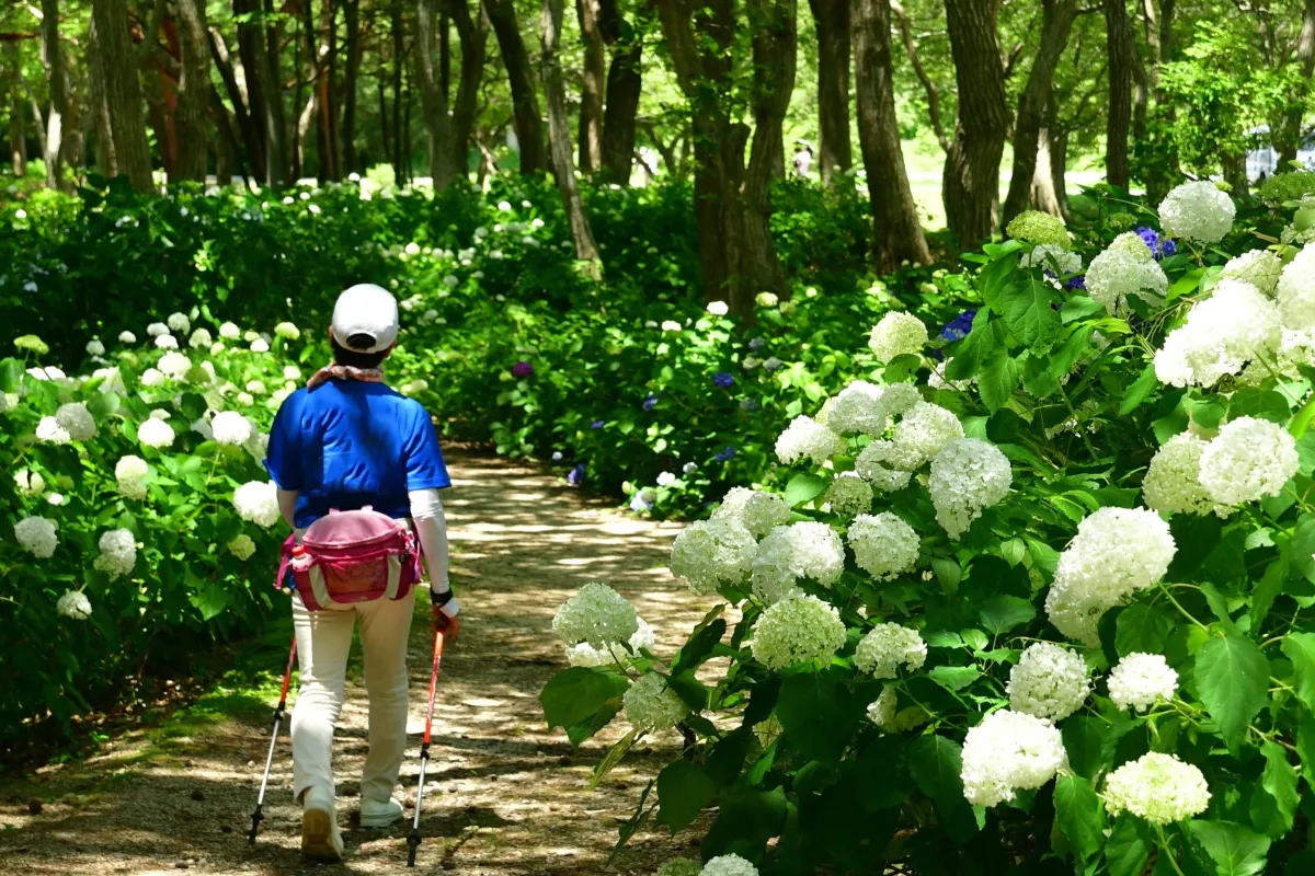 茨城県ひたちなか市に位置する国営ひたち海浜公園が初夏の美しい景色を披露しています。「ひなの林」にある約550株のアジサイアナベルがこの時期、純白の花を咲かせ、訪れる人々を楽しませています。見頃は6月26日から7月10日頃まで続くと予想されています。