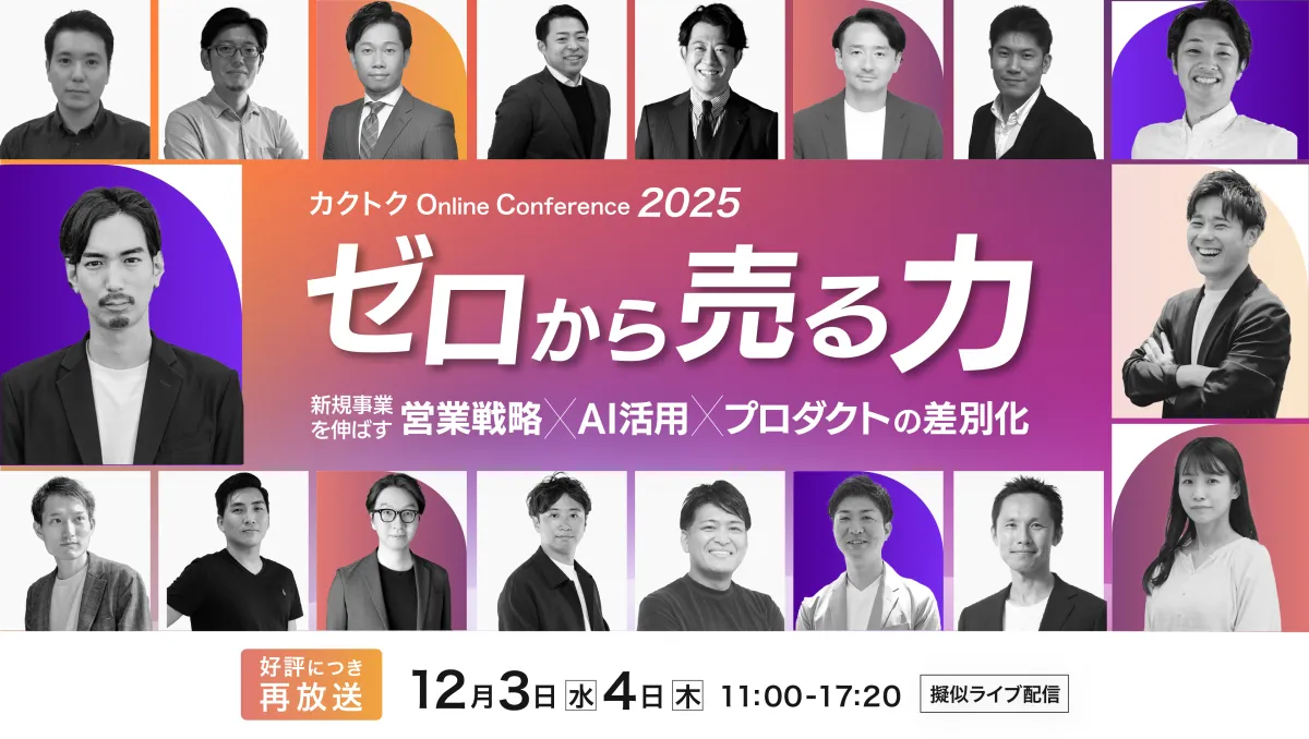 「カクトク」は、大分県別府市に本社を構える企業で、日本最大級の営業マッチングプラットフォームを運営しています。その中で、12月3日(水)・4日(木)にかけて、再放送の形で「カクトク Online Conference 2025」を開催します。このカンファレンスでは、プロダクト開発、営業戦略、AI活用の3つの観点から新たなビジネスモデルを提案し、皆さんを“売れる新規事業”へと導くための講義が行われます。