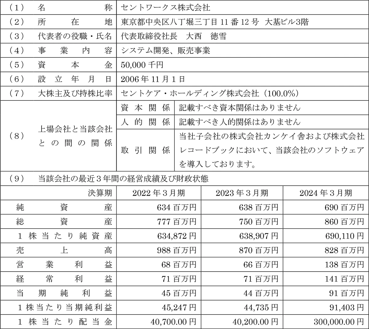 この株式取得の相手先であるセントケア・ホールディング株式会社は、東京証券取引所のプライム市場に上場しています。また、取得株式数や価額に関しては、第三者の株式評価に基づいて決定され、公正で妥当とされています。今後の業績への影響は軽微であると見込まれますが、もし重大な事象が発生した場合は速やかに情報を提供する方針です。