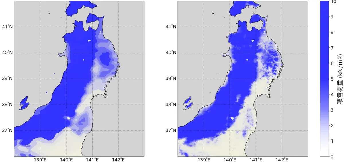 農業・食品産業技術総合研究機構が提供する「メッシュ農業気象データ」を活用することにしました。このデータは、気象庁の観測データを基に、各種気象条件に対して補正が行われているため、地域特性を考慮した推定が可能です。この新しいデータを利用することで、日本全国の任意再現期間における年最大積雪重量を取得することができます。