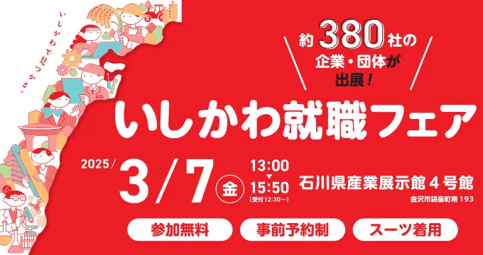 石川県金沢市で、2025年3月7日(金)に開催される「いしかわ就職フェア」の全貌が明らかになりました。このイベントは、県内での就職を希望する学生にとって、絶好の機会を提供します。400社近い企業が一堂に会するこのフェアでは、参加企業の担当者が自社の魅力や採用選考のプロセスを直接学生に伝えます。