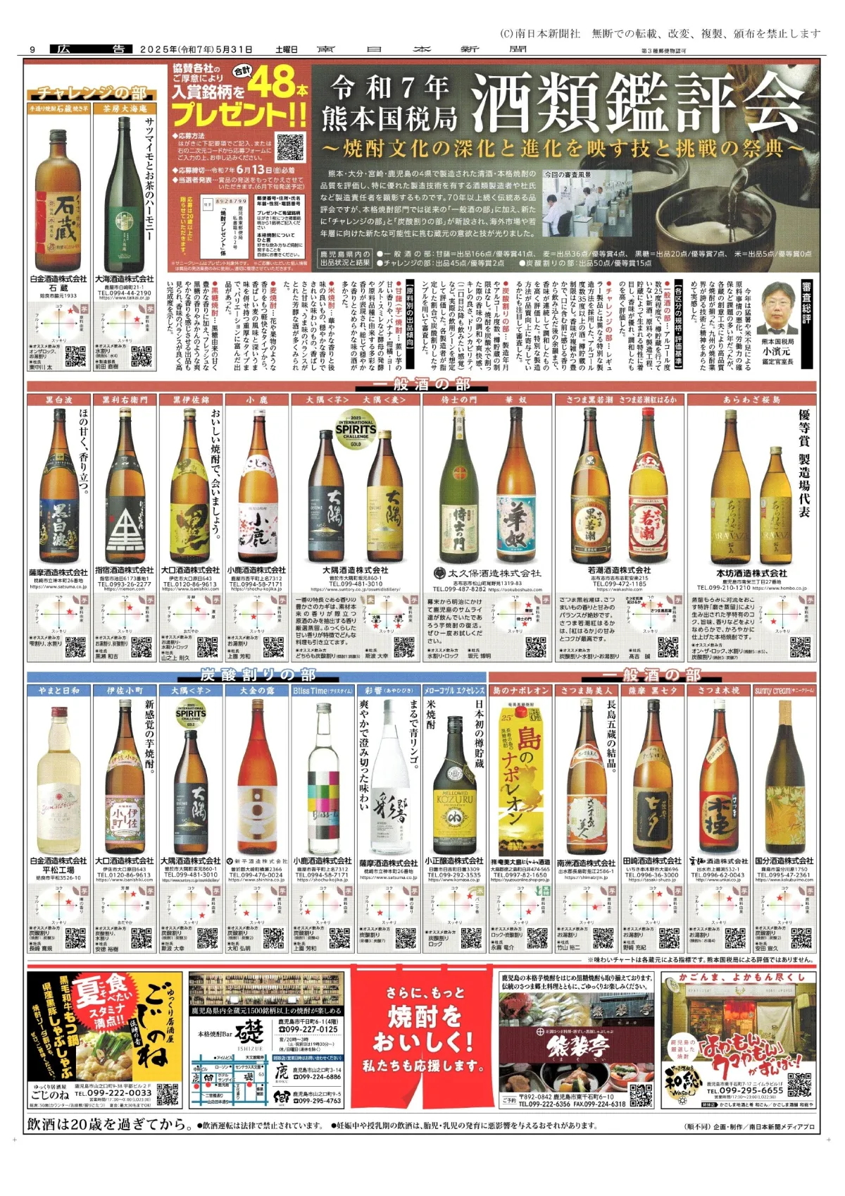 2025年5月31日付の朝刊には、同鑑評会に参加した18の製造場と24の銘柄が紹介され、焼酎にかける情熱や技術の高さを伝えています。これは、鹿児島県の焼酎文化を守り、さらに発展させることを目的とした取り組みであり、毎年恒例の企画となっています。
