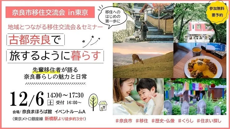 2025年12月6日、奈良市にて移住交流会兼セミナー「古都で旅するように暮らす」が開催されます。このイベントは、奈良の魅力を感じながら移住を考える方々や、地域に興味を持つすべての人々にとって貴重な機会です。