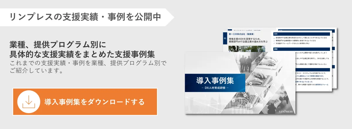 本事例集は「DXを推進できる人材が不足している」と感じている企業の人材育成担当者や人事の方々に特にお勧めです。実績と具体例を確認することで、社員教育や人材育成の方針を見直すきっかけになることでしょう。