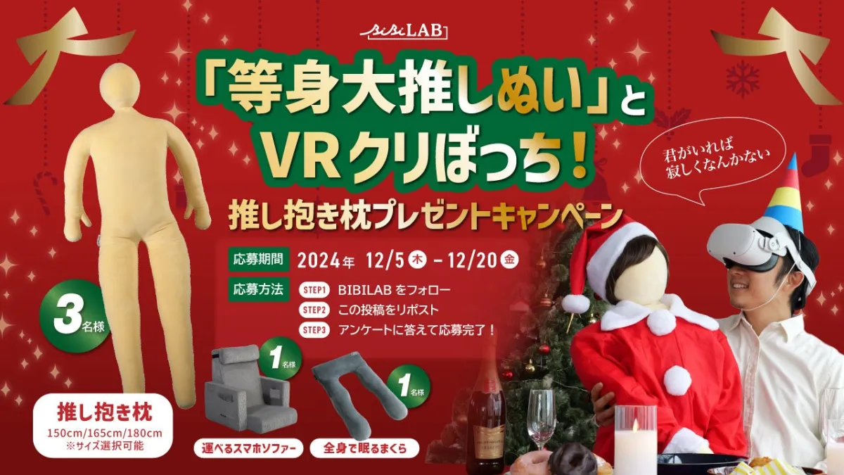 趣味グッズブランド「BIBILAB®(ビビラボ)」が2024年12月5日から、クリスマスシーズンにぴったりなプレゼントキャンペーンを実施します。SNSでお馴染みのX(旧Twitter)を通じて行われるこのイベントでは、好評の等身大「推し抱き枕」が当たるチャンスが待っています。