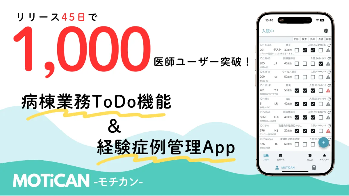 MOTiCANのリリース後、迅速に1,000人の医師ユーザーを獲得し、さらに高いインプレッション数を記録したことは、医療現場における本サービスのニーズの高さを示しています。今後も病棟業務の効率化機能をさらに充実させ、Android版やWebサービスの展開を計画中です。このような動きは、医療現場の働き方を変える可能性を秘めています。