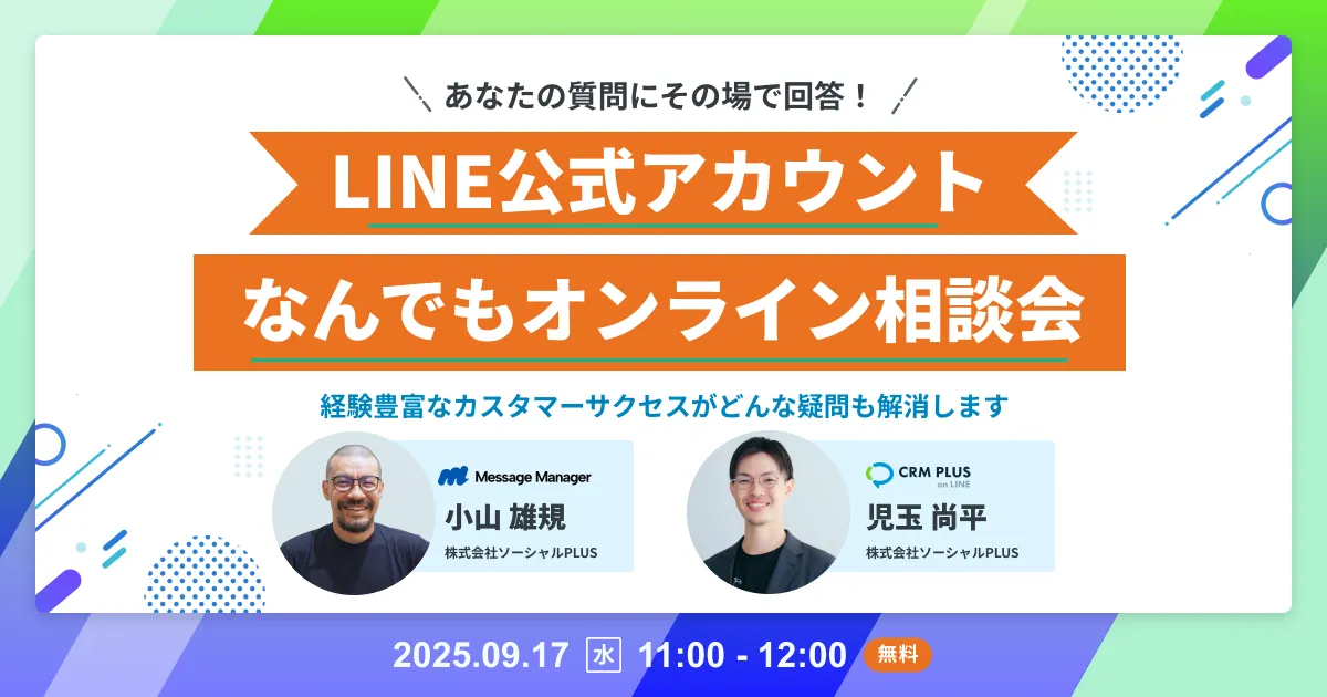 2025年9月17日(水)に、株式会社ソーシャルPLUSが主催する無料オンラインセミナー「LINE公式アカウントなんでも相談会」が開催されます。このセミナーでは、LINE公式アカウントに関するさまざまな疑問を解消するための機会が提供されます。