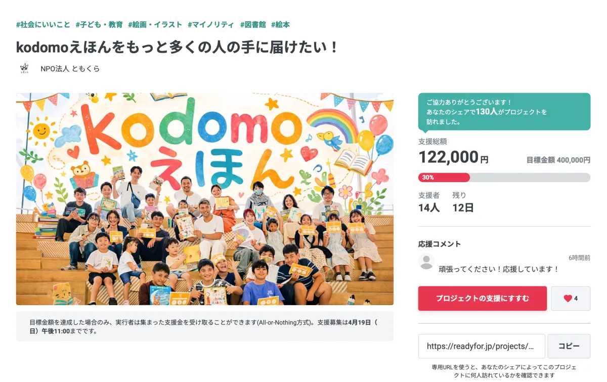 ともくらは、これまでの活動で得た経験をもとに、今回のプロジェクトにフィナーレを迎えようとしています。そして、クラウドファンディングを通じて、100冊の絵本を製作し、必要な学校や教育機関、福祉団体に寄贈することを目指しています。製本費用として約35万円を見込んでおり、全体の金額は40万円に設定されています。