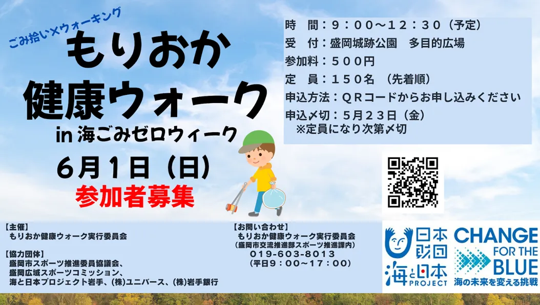 岩手県の美しい海を未来につなぐ活動として、2025年6月1日(日)に盛岡城跡公園で「もりおか健康ウォークin海ごみゼロウィーク」が開催されます。このイベントは、一般社団法人海と日本プロジェクトin岩手が主催し、健康促進と環境保護を一体的に進めることを目指しています。