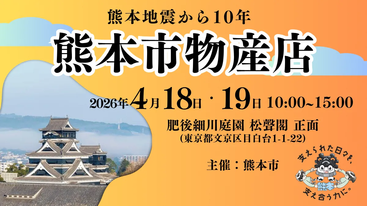 2026年4月18日と19日、熊本市が主催する『熊本市物産店』が東京都文京区の肥後細川庭園にて開催されます。このイベントは、2016年に発生した熊本地震からの復興を振り返り、支えてくださった全国の皆様に感謝の意を表すものです。熊本は多くの人々の支援により、力強く復興を遂げてきました。