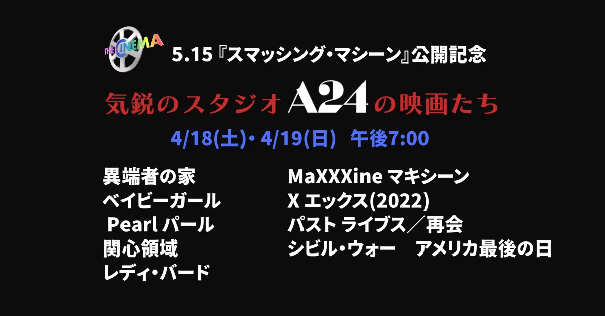 5月15日(金)、ドウェイン・ジョンソン主演の映画『スマッシング・マシーン』が日本で公開される。この作品は、全世界で多くの注目を集めており、その公開に合わせて、洋画専門チャンネル「ザ・シネマ」ではA24が手がけた選りすぐりの傑作映画を特集します。特集は4月18日(土)と19日(日)の2日間にわたり、全9作品が放送される予定です。