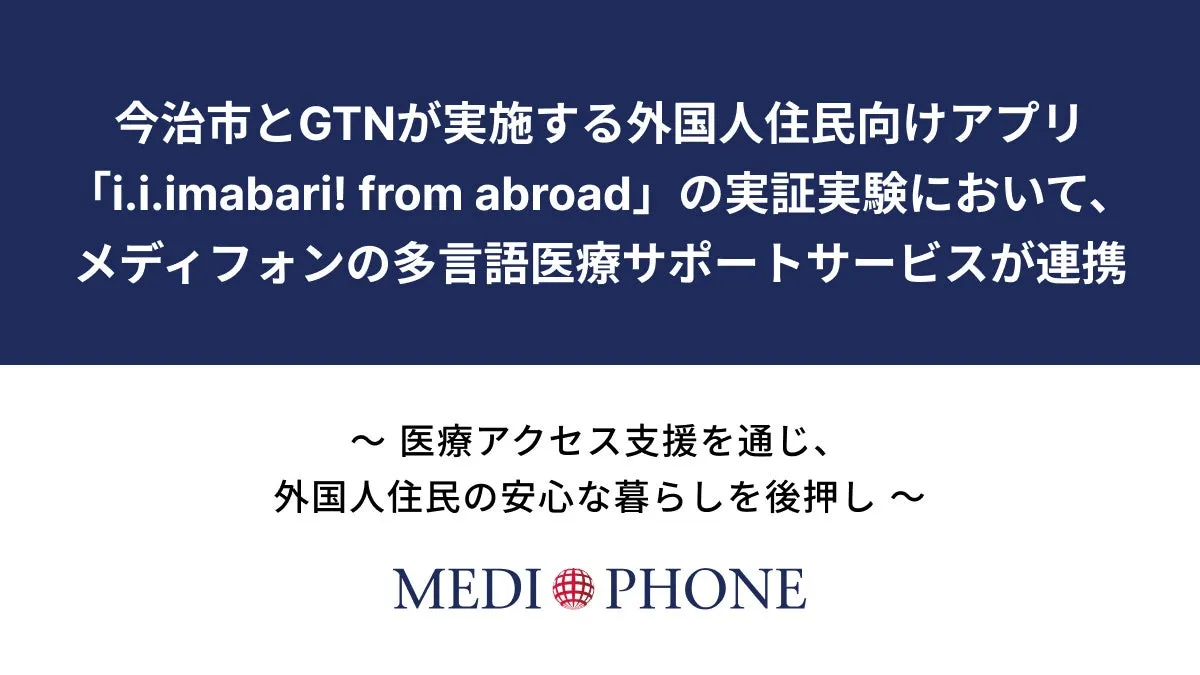 本実証実験では、メディフォン株式会社が提供する「mediPhone Assistance Line」がアプリ内で連携します。このサービスは、医療機関への相談から受診支援まで、専門家が多言語でサポートします。外国人住民が必要とする医療情報を迅速かつ正確に届けることで、より安心して医療機関を利用できる環境が整います。
