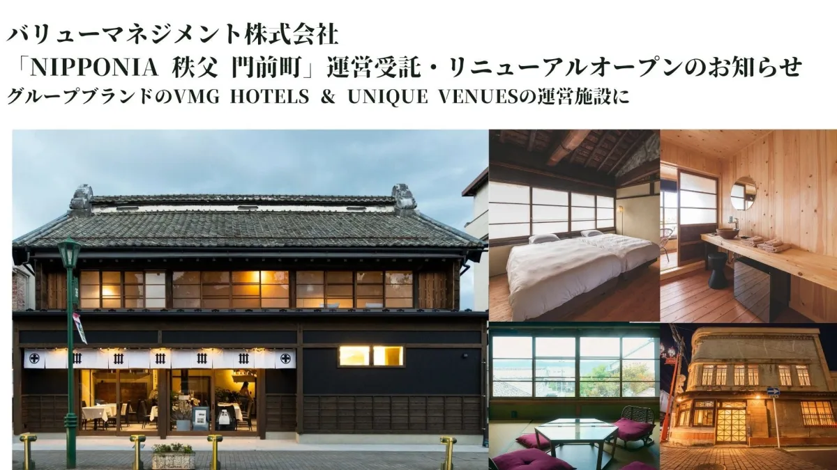 埼玉県の秩父市に位置する「NIPPONIA 秩父 門前町」が、2025年4月25日(金)より、バリューマネジメント株式会社によって新たに運営されることが決定しました。この分散型ホテルは、地域の持続的な活性化を目指し、秩父の重要な観光資源として位置づけられています。このたびの運営受託にあたって、ホテルを一層快適にするための改修作業が行われ、多くの観光客や地元の人々に新しい体験を提供することを目指しています。