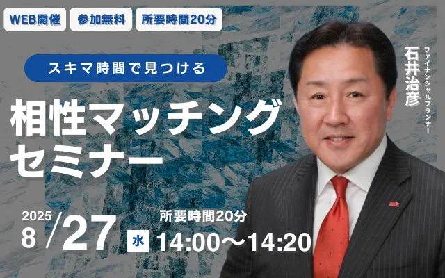 このセミナーでは、信頼できるFPである石井治彦氏が講師を務めます。彼は外資系航空会社勤務を経てFP資格を取得した経験豊富な専門家。「相性マッチングセミナー」は、参加者が自分に合ったFPを見つけるためのものです。不安や疑問を持つ方々が、気軽に相談できる雰囲気の中で講師を選べる機会を提供します。