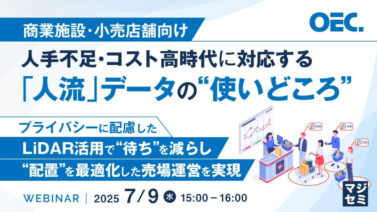 このウェビナーでは、商業施設や小売店舗を対象に、人流・交通観測ソリューション「ナガレミル」を活用し、人流データの効果的な運用方法について具体的なユースケースを交えて解説します。参加者は、「ピーク時の混雑緩和」「効率的なスタッフの配置」「売場構造の見直し」「販促施策の効果可視化」などの実用的なヒントを得られる内容となっています。「ナガレミル」は3D-LiDAR技術とAIを駆使してデジタルツイン環境を構築し、リアルタイムで移動データを蓄積・分析します。個人情報を一切扱うことなく通行量だけでなく、1秒ごとの移動データも把握でき、これまで見えてこなかった人の流れを売場改善に役立てることができます。