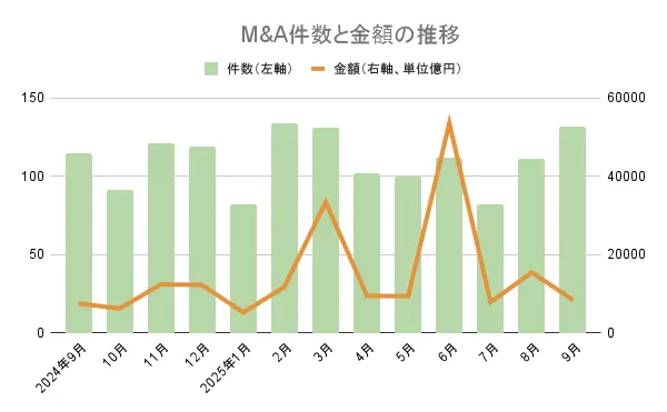 2025年9月のM&A市場:過去最多の件数と高い取引金額