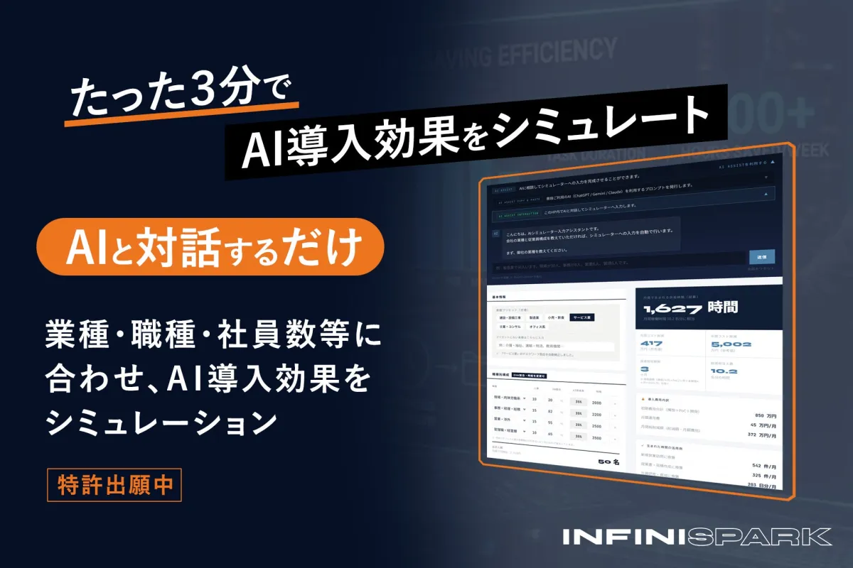 2026年3月26日、インフィニスパーク株式会社が中小企業の経営者や管理職向けに公開した『AI導入効果シミュレーター』が注目を集めています。このツールは、AIの導入に際し、企業が抱える「費用対効果が分からない」という障害を解消するために作られました。