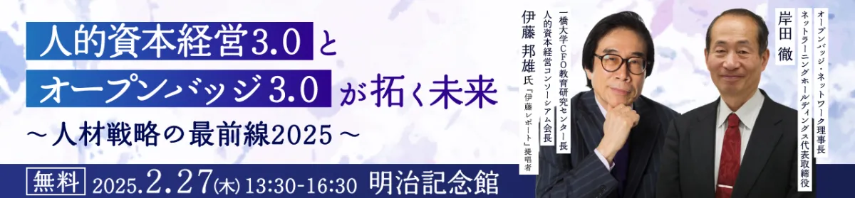 人的資本経営やオープンバッジの重要性は今後ますます高まると考えられています。特に、2025年というタイムフレームに向けて、企業は人材育成の新しいアプローチを模索し続ける必要があります。伊藤邦雄氏の講演やシンポジウムの内容は、こうした方向性を示すものとして、大変価値のあるものとなりました。参加者は、この知識をどのように活用していくのか、今後の展開にも注目が集まります。