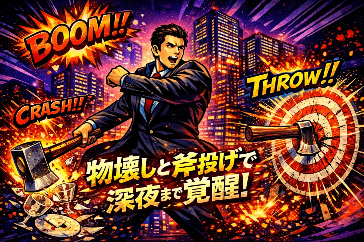 「REEAST ROOM」とは、物を壊す快感や斧を投げるスリルを楽しむアミューズメント施設です。このユニークな体験は、日常では味わえない非日常の時間を提供します。一方、「THE AXE THROWING BAR」は、斧投げを楽しみながらドリンクやフィンガーフードを楽しめるスポーツバー。この二つが一体となって、新たな深夜の楽しみを提案します。