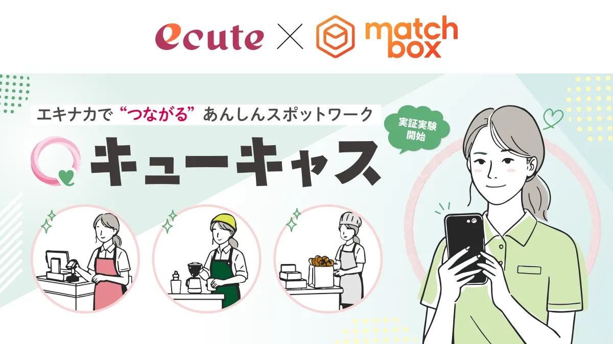 JR東日本グループのエキナカ商業施設「エキュート」は、株式会社JR東日本クロスステーションデベロップメントカンパニー(以下「JR-Cross」)と株式会社Matchbox Technologies(以下「マッチボックス」)による新しいワークサービス「キューキャス」の実証実験を開始します。