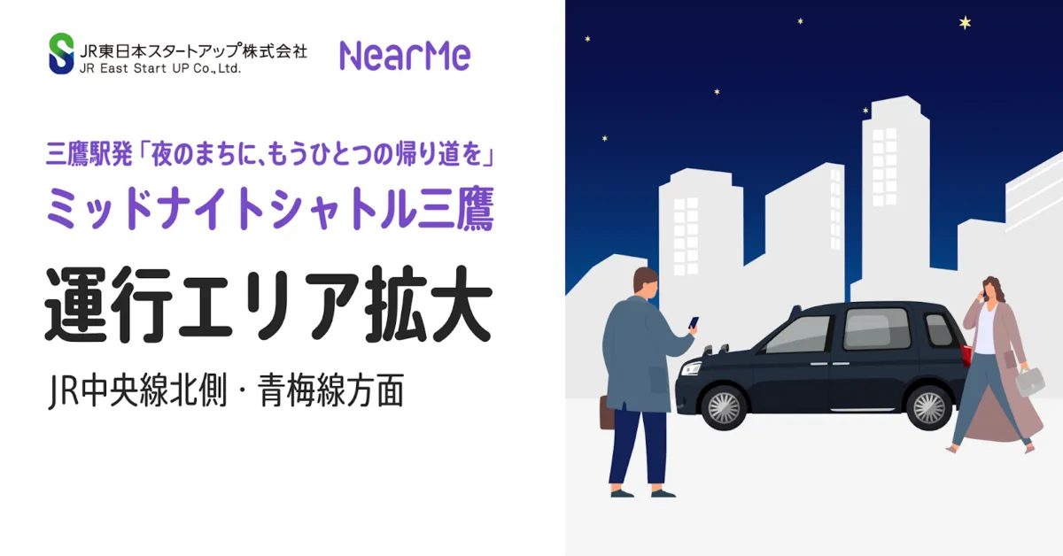 株式会社NearMe(ニアミー)とJR東日本スタートアップ株式会社が共同で展開する『ミッドナイトシャトル三鷹』が、2025年8月1日から運行エリアを拡大することが決定しました。この拡大により、JR中央線沿線の北側エリアやJR青梅線昭島方面へのアクセスが可能となり、深夜帯の交通の課題をさらに解決することを目指しています。