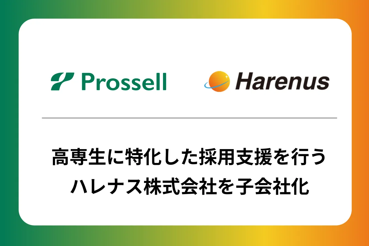 株式会社プロッセルホールディングス(新潟県新潟市)は、グループ会社である同社が運営するプロッセルが、愛媛県に本社を持つハレナス株式会社の株式を取得し、子会社化したと発表しました。これによりプロッセルは、高専生への採用支援やキャリア教育を一層強化する計画です。