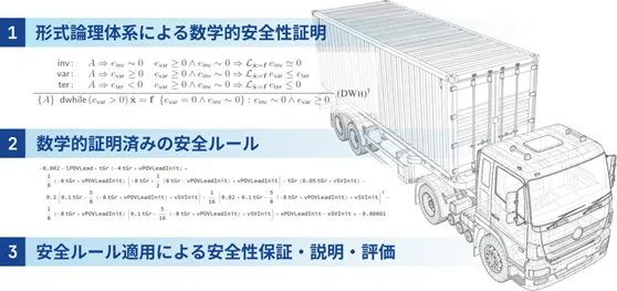 - - 目的:自動運転トラックに対する数学的アプローチを利用した安全論証の強化及び社会実装に向けた安全性説明フレームの構築