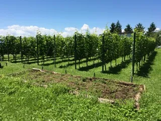 試飲会で提供される「自家畑メルロー100%ぶどうジュース」は、浅間山麓の清らかな自然の中で大切に育てられたワイン用ぶどう、メルローから作られています。収穫には手摘みが行われ、熟した良い実だけを丁寧に選別して使用します。さらに、採れたぶどうは天然水でしっかりと洗浄され、収穫からわずか2日後にはジュースに加工されるため、その鮮度と香りは格別です。