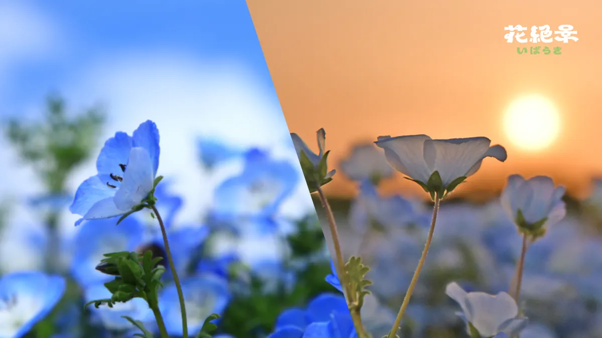 - - 早朝コースでは、朝日と共に広がる青の花々の自然美を堪能できます。一方、夕暮れコースでは、夕陽に染まるネモフィラの幻想的な景色をお楽しみいただけます。