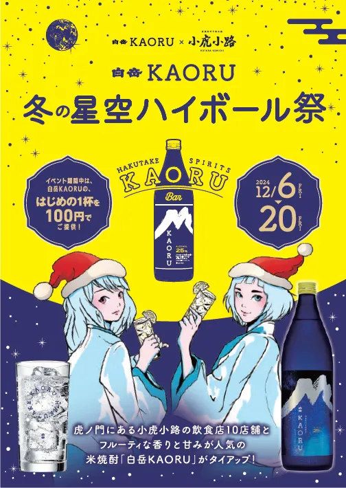 2024年の冬、新たな楽しみ方として注目のイベントが虎ノ門に登場します。その名も「白岳KAORU冬の星空ハイボール祭」!高橋酒造株式会社とG-FACTORY株式会社が共同で手掛けるこの祭りは、フルーティーな香りが若者を惹きつける「白岳KAORU」を中心に展開されます。開催期間は12月6日から20日までの14日間で、虎ノ門の隠れた名所である「小虎小路」にて、仕事終わりに気軽に訪れることができる横丁でのはしご酒体験が待っています。