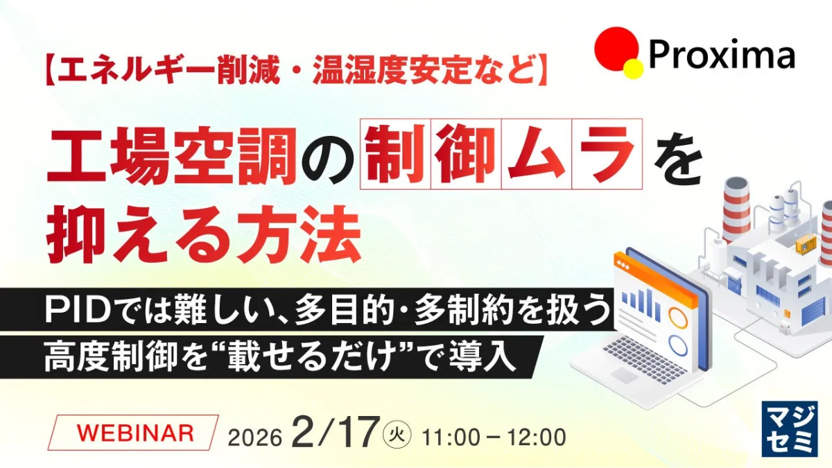 このウェビナーでは、専門的な知識がなくても導入・運用可能な高度制御技術「Smart MPC」の活用方法を紹介します。この技術は、未来の動きを予測し、最適な操作をリアルタイムで実施するMPC(Model Predictive Control/モデル予測制御)を基盤としており、機械学習や最適化技術を組み合わせて、高精度な予測ができるのが大きな特徴です。これにより、専門知識がなくても、過去の運用データをもとに、より精密な制御を実現しています。
