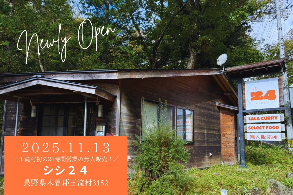 長野県木曽郡王滝村に位置する御嶽スキー場を運営する株式会社シシが、2025年11月13日(木)に地域初の24時間営業無人販売所『シシ24』をオープンします。これは、旧ララカレーオンタケ店舗跡地に誕生する新たな食の拠点で、地域住民や観光客にとっての生活の利便性を一層高めるものとなるでしょう。