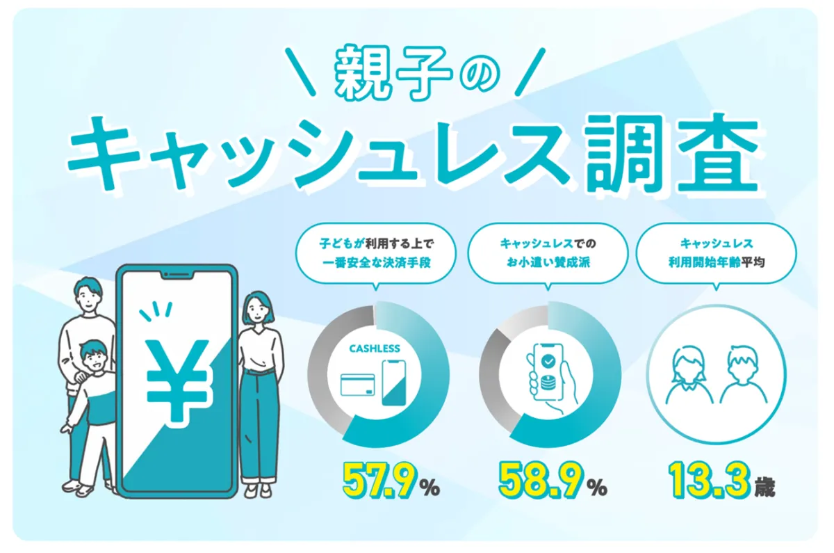 また、調査の中で「キャッシュレスお小遣い」を支持する声も多数ありました。58.9%が「賛成」と回答し、特に20代・30代の親は約60%がこの方針に賛同しています。子どもたちにお小遣いを与える形で、実際の決済体験を通じて金銭管理を学ばせることは重要です。