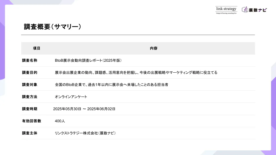 最近、リンクストラテジー株式会社が実施したBtoB展示会動向調査では、展示会に訪れたビジネスパーソン400人の声を基に、来場目的やブースの印象、情報源などについての詳細なデータが明らかになりました。これにより、出展企業と来場者間の意識のギャップを可視化し、今後のブース設計や集客戦略の参考となることが期待されています。