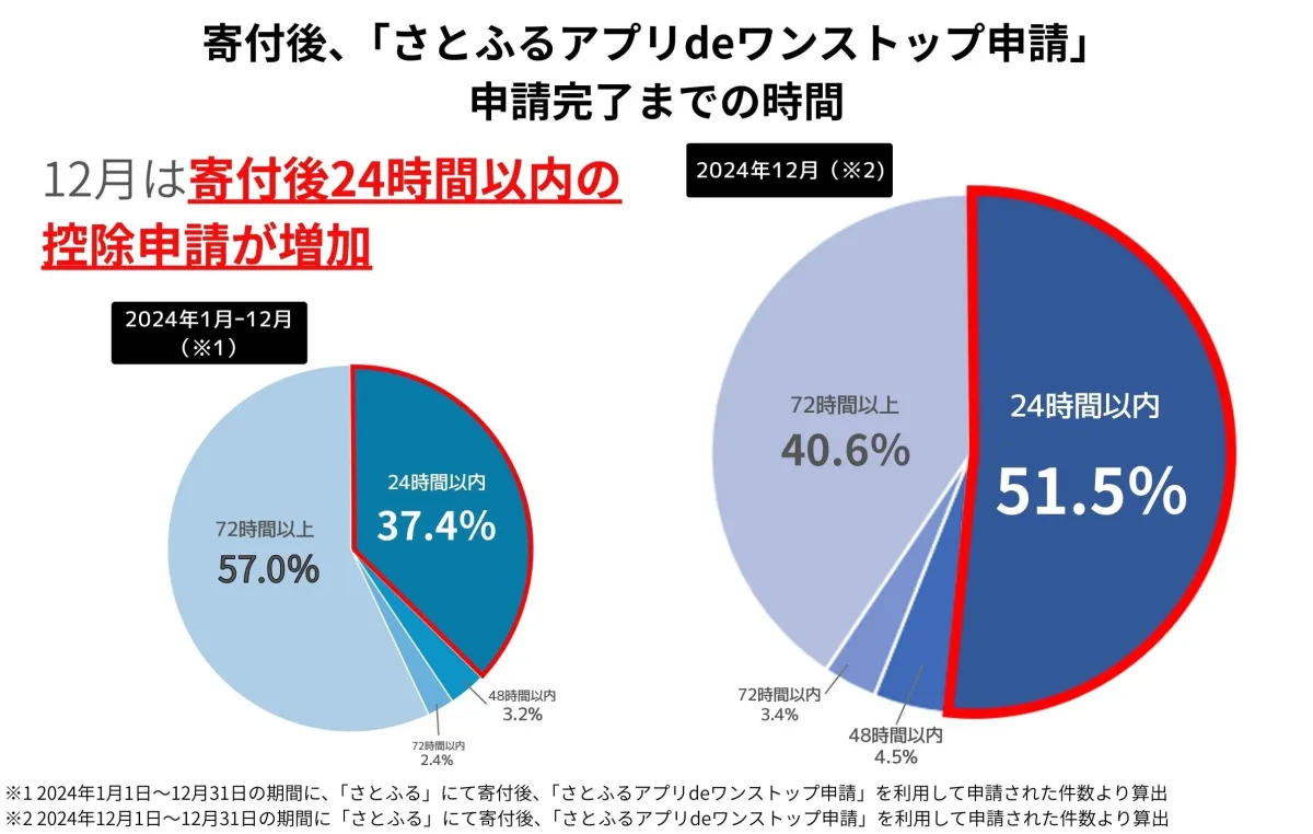 近年、ふるさと納税の仕組みが進化を遂げ、寄付と控除申請を同時に行う動きが加速しています。特に、ふるさと納税ポータルサイト「さとふる」の運営を手掛ける株式会社さとふるは、その利便性を高めるための新しい取り組みを進めています。最近のデータによると、2024年に行われた寄付の37.4%が寄付後24時間以内に控除申請が行われていることが分かっています。これは、年末にかけて寄付が増加する時期において、特に目立つ傾向です。