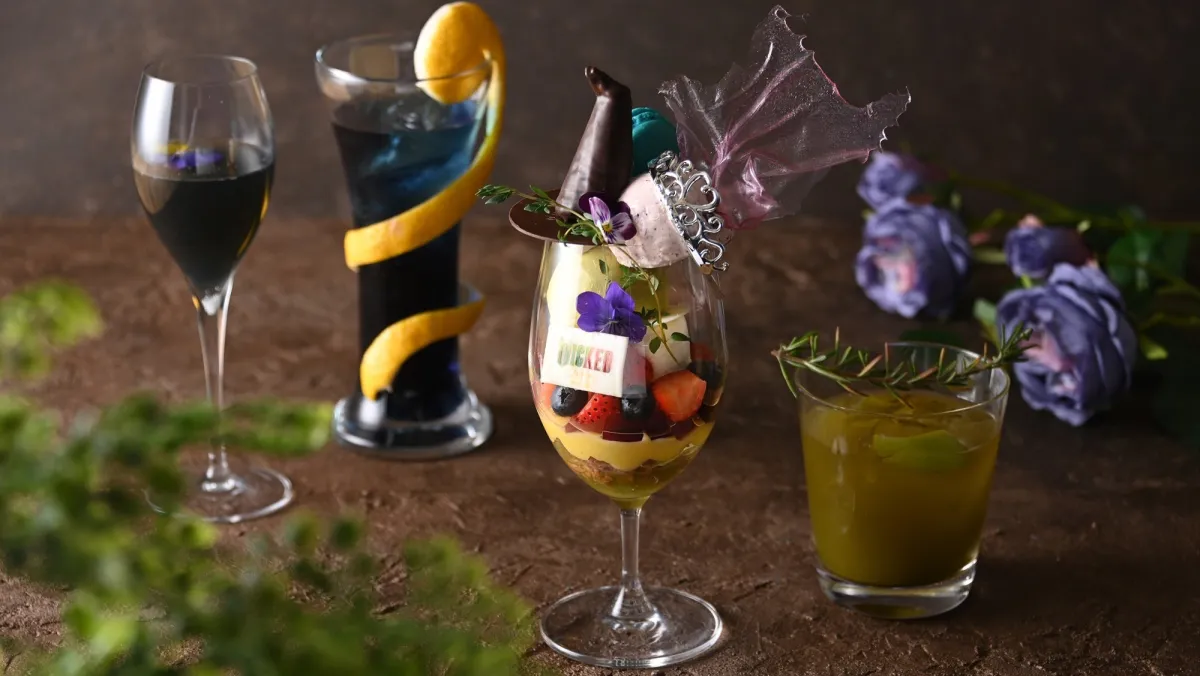 今回のコラボレーションでは、映画からインスパイアされたオリジナルスイーツやカクテルが登場します。例えば、1台2,500円のパフェ「A Perfect Duet」は、エルファバをイメージしたピスタチオアイスとグリンダをイメージしたブルーベリーアイスを重ね、中央にはフィエロをイメージしたマカロンが飾られています。グリンダのドレスを模したジュレも添えられ、映画の魅力が詰まった特別仕様です。