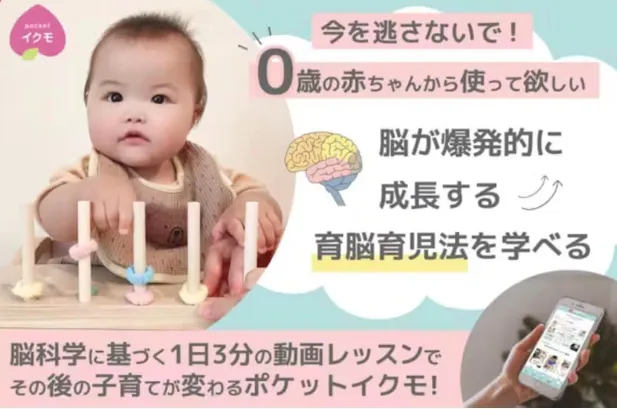 「ポケットイクモ」では、毎日3分間の動画レッスンを通して、この育脳メソッドを学べます。月齢に合わせた内容の動画が提供され、忙しい毎日でも手軽に育脳育児を実践できます。
