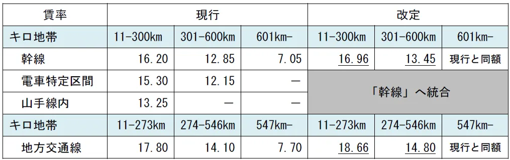 これを踏まえ、新たな運賃体系を創設し、お客様にとっての利便性向上や鉄道事業の持続可能性を高める目的での改定となります。具体的には、全エリアの運賃を見直し、幹線の運賃区分については「電車特定区間」と「山手線内」を統合し、よりシンプルな運賃を目指します。