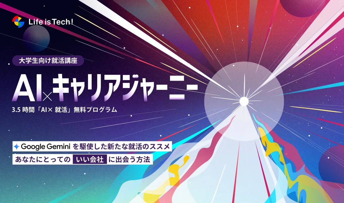 ライフイズテック株式会社が、大学生を対象としたオンラインキャリア教育プログラム「AI Career Journey」を2025年7月にスタートします。これは、Googleが提供する生成AI「Gemini」を活用し、大学生のキャリア選択を支援するためのプログラムです。