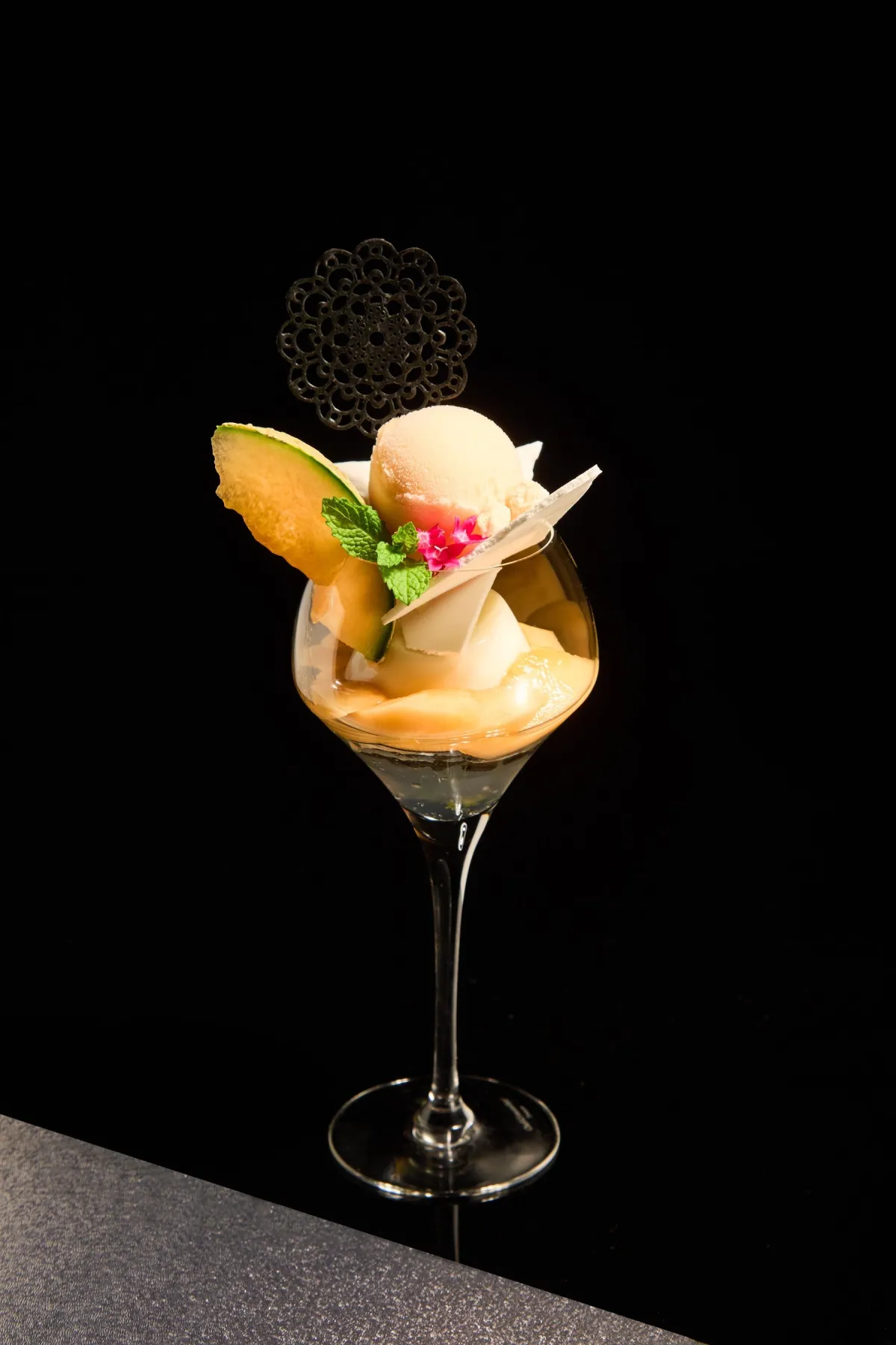 「Melztli」という名前は、メキシコの国名の語源とされるナワトル語の「Metztli(月)」と「Melon(メロン)」を組み合わせた造語です。このパフェは、バーの雰囲気にぴったり合ったユニークなデザートであり、まるで夜空に浮かぶ赤玉メロンの月をイメージさせます。夜にこそ味わいたいパフェとして、他では味わえない新たなデザートカルチャーを提案しています。