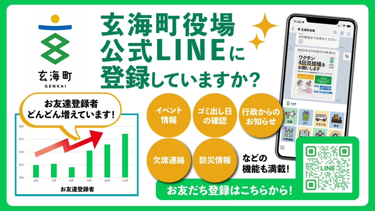 令和5年度からの取り組みとして、玄海町公式LINEアカウントの運用支援が始まりました。このみの結果として、友達数は1100人以上増加し、2025年5月には町の人口の約4人に1人がLINEを通じて情報を受け取る状況になります。週3回、町のイベントの情報をLINEでプッシュ配信することで、住民への情報伝達の効率化が図られました。