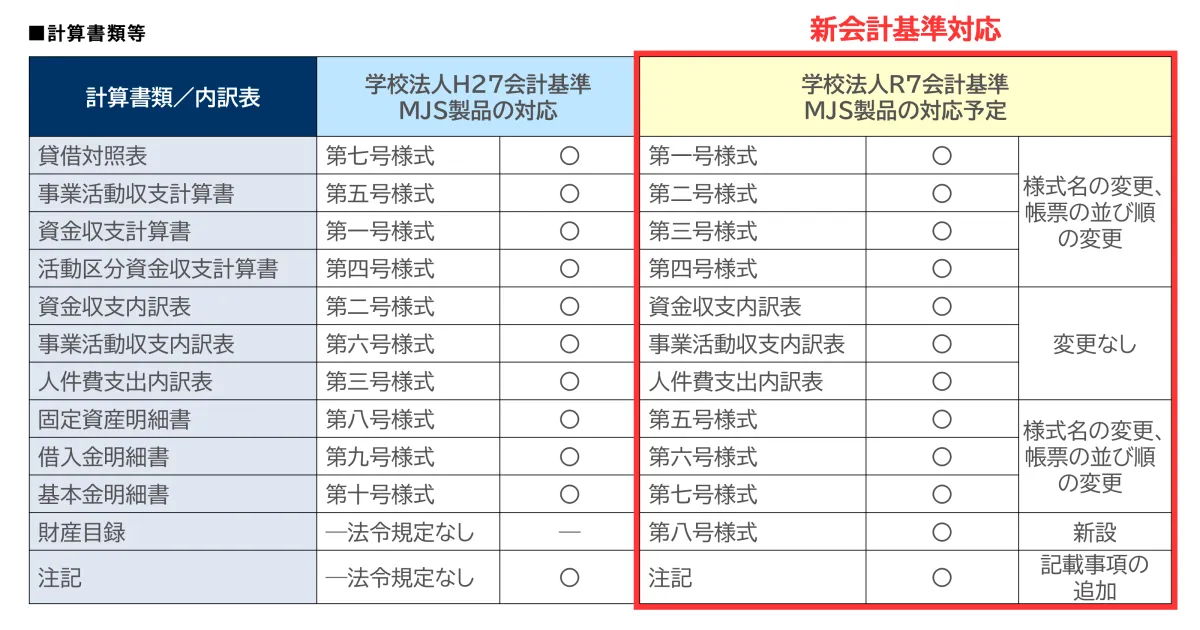 MJSが提供する「学校法人決算書オプション」機能が、この新会計基準に対応する製品の一環として開発されています。具体的には以下の4つの製品で対応が進められます: