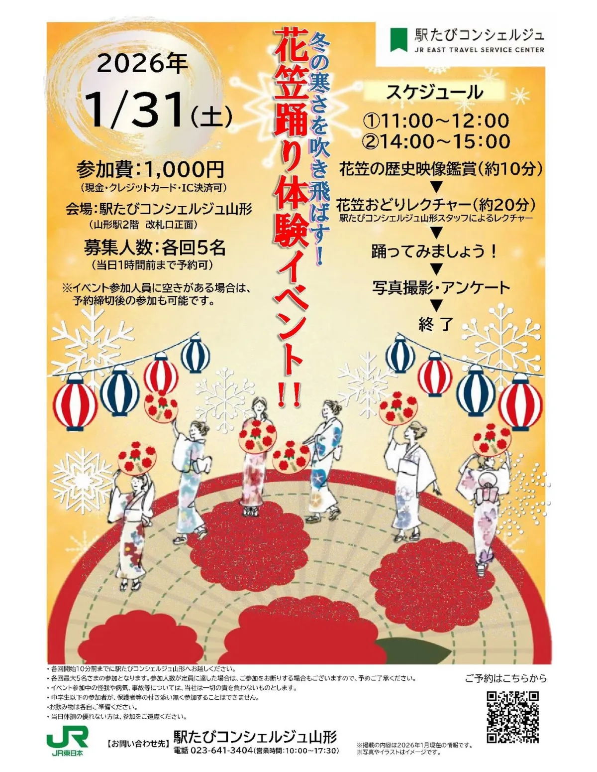 2026年の冬、山形駅前で花笠踊りが楽しめるイベントが行われます。このイベントは、山形の夏の風物詩である「花笠まつり」のエッセンスを凝縮したもので、参加者は寒い季節の中でその熱気を体験できる貴重な機会です。