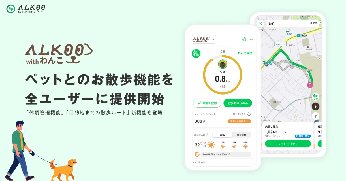 株式会社ナビタイムジャパンが提供するウォーキングアプリ『ALKOO by NAVITIME』は、2025年10月2日から新たに「ALKOO with わんこ」モードを全ユーザー向けに開放しました。この新機能は、ペットとのお散歩をより楽しく、安心して行えるためのサポートを提供します。