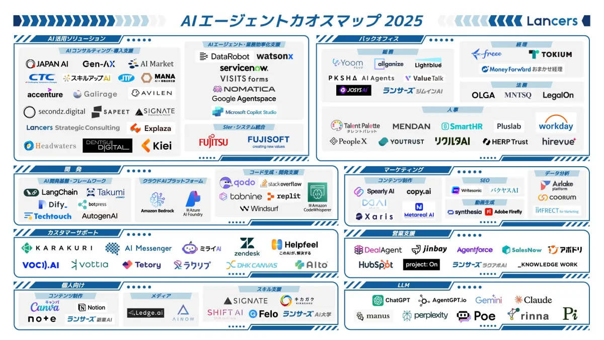 ランサーズが公開した最新のAIエージェントカオスマップ