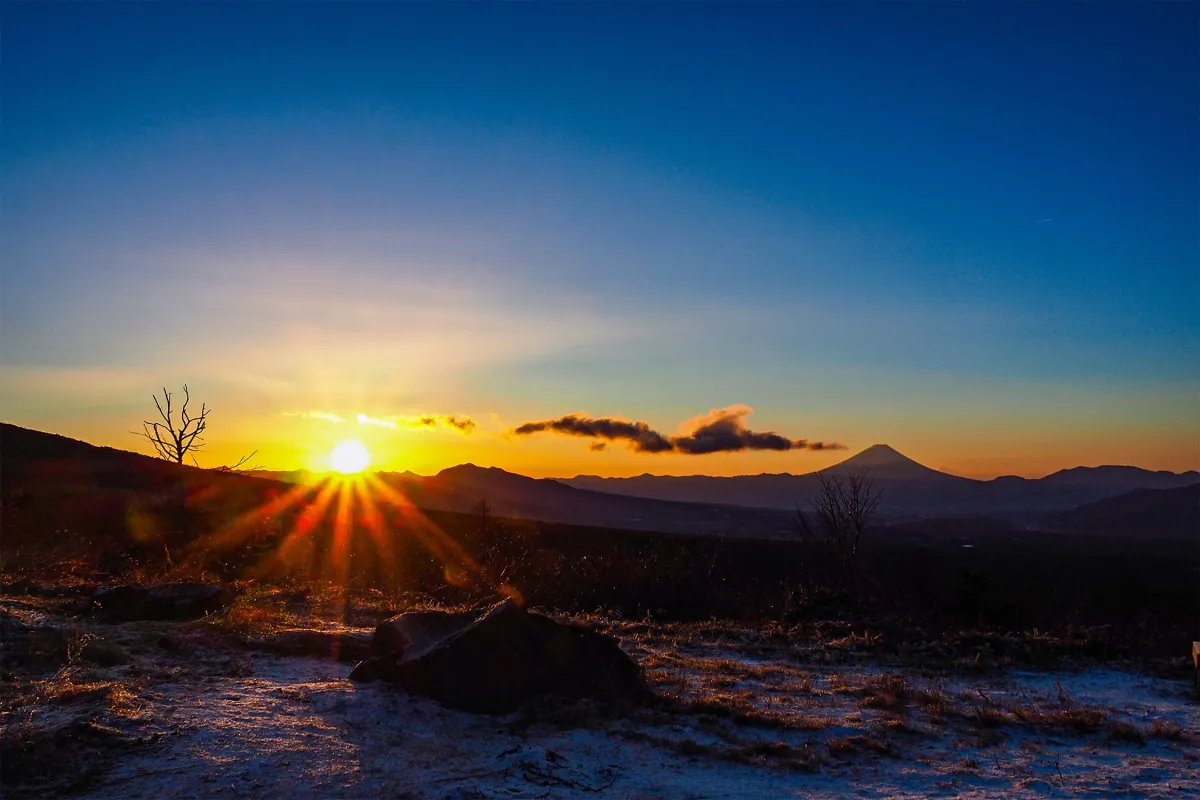 新設された展望デッキからは、富士山と八ヶ岳の素晴らしい景色が望めます。特に初日の出の瞬間は、朝焼けに染まる空に浮かぶ富士山の姿は、まさに絶景です。日の出時刻は、6時55分頃。この特別な瞬間を共に楽しむ仲間とともに、感動的な思い出を作りましょう。